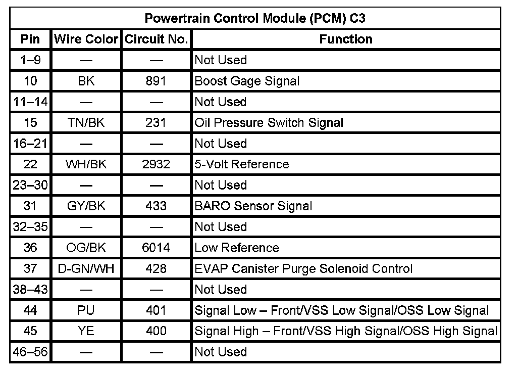 Powertrain Control Module (PCM) C1 (Pin 25 To 56):
