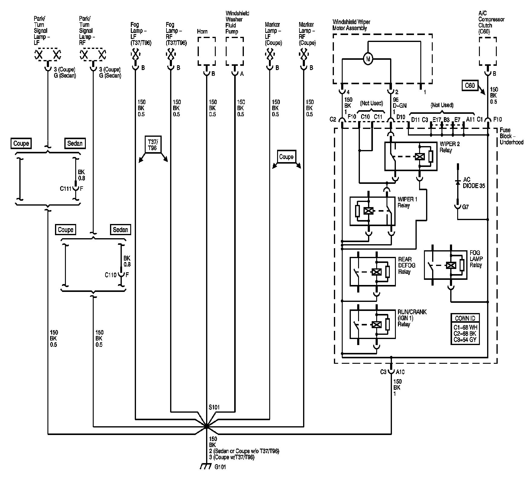 The locations for the Connectors, Grounds, Splices, and Grommets shown within these diagrams can be found via their numbers at Vehicle Locations.