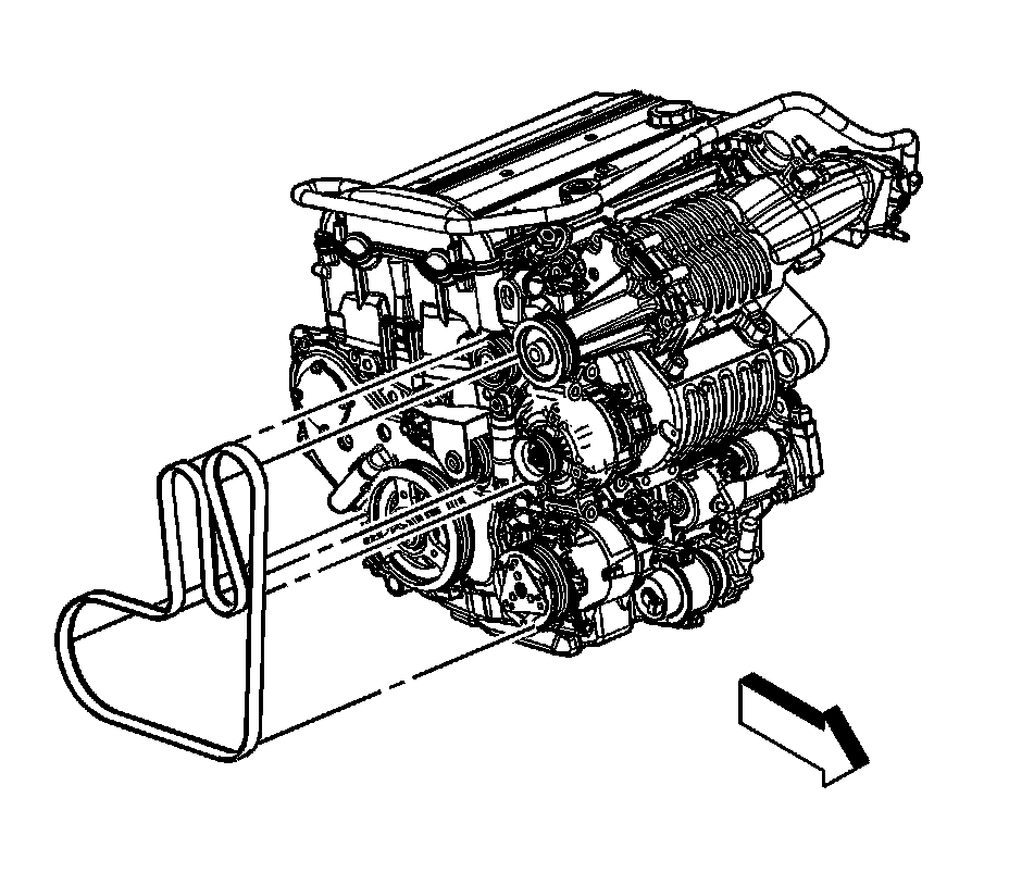 5. Remove the drive belt from around the supercharger and generator pulleys.