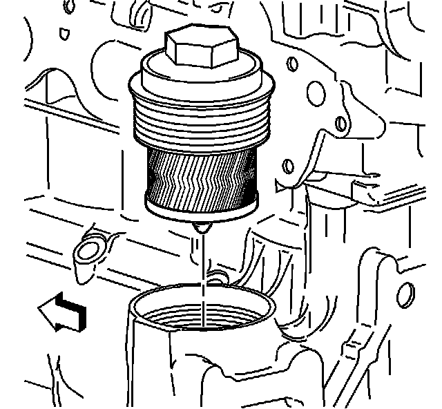 Notice: Over torquing the oil filter cap may cause damage to the oil filter cap resulting in an oil leak.