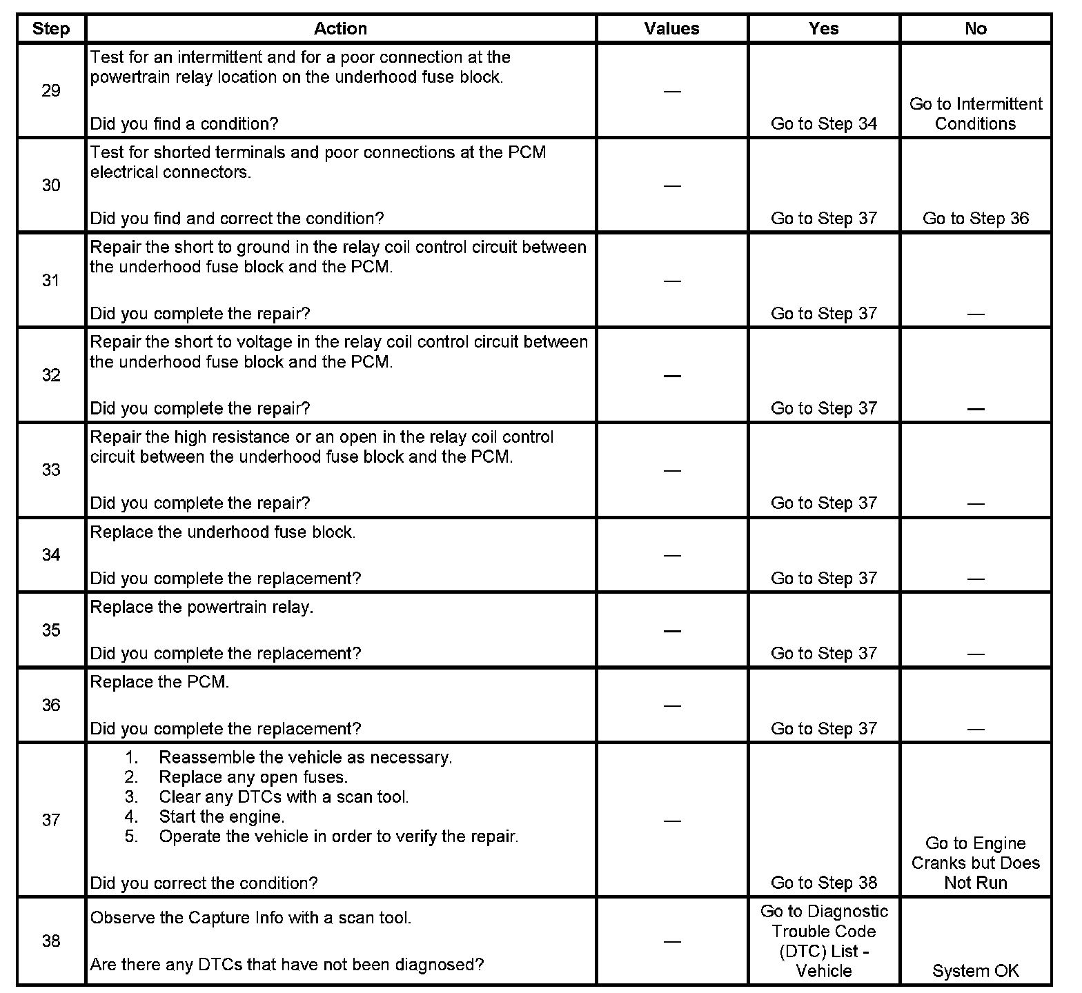 If the powertrain relay fails to close, the engine will crank but will not run. The class 2 communications will be available with the use of a scan tool.