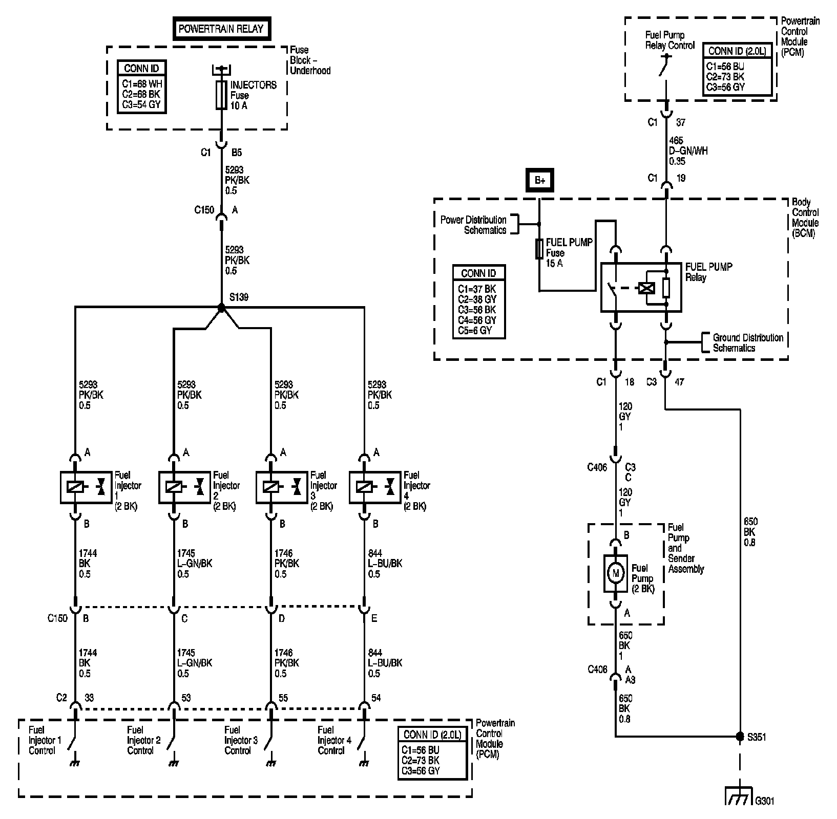 Locations: The locations for the Connectors, Grounds, Splices, and Grommets shown within these diagrams can be found via their numbers at Vehicle Locations. Locations