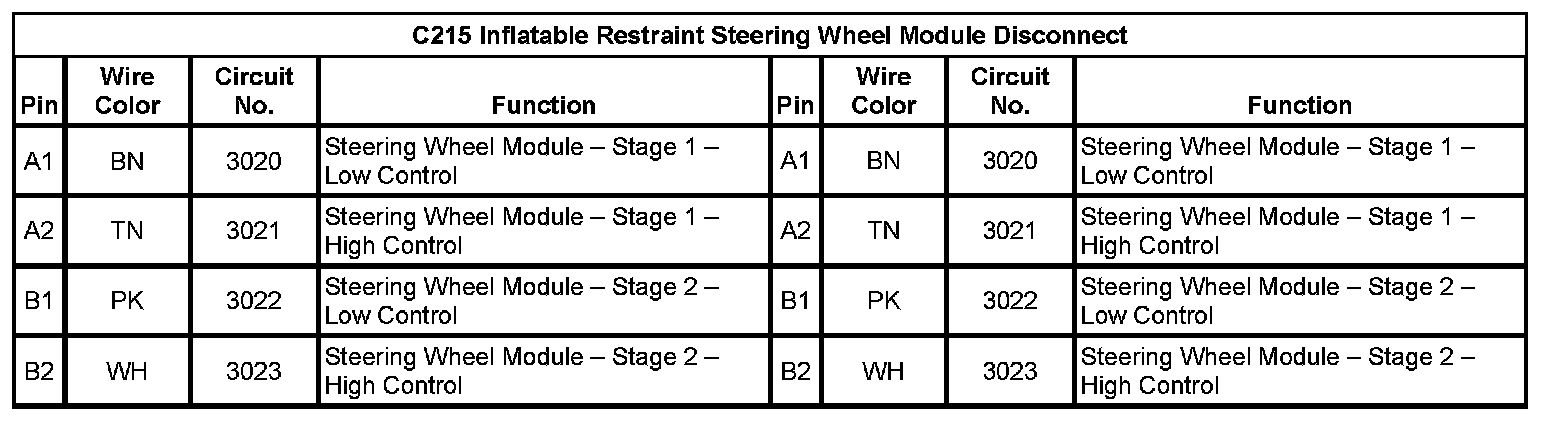 C215 Inflatable Restraint Steering Wheel Module Disconnect