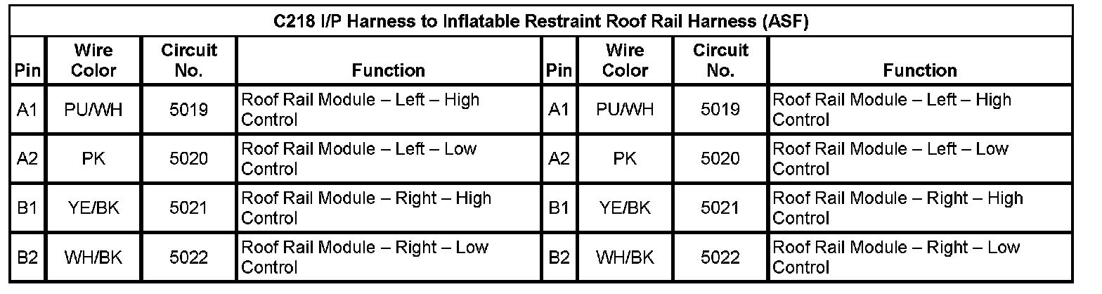 C218 I/P Harness to Inflatable Restraint Roof Rail Harness (ASF)