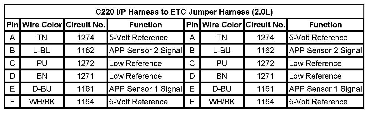 C220 I/P Harness to ETC Jumper Harness (2.0L)