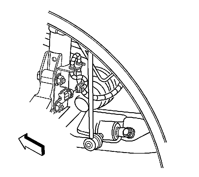 6. Release the wheel speed sensor jumper connector from the harness retaining bracket on the strut, if equipped with ABS.