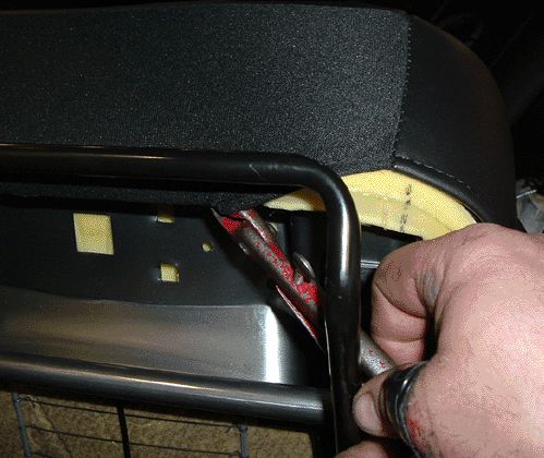 3. Secure the J-strip to the seat frame with hog rings. Snap the hog rings through each end of the J-strip and around the seat frame.