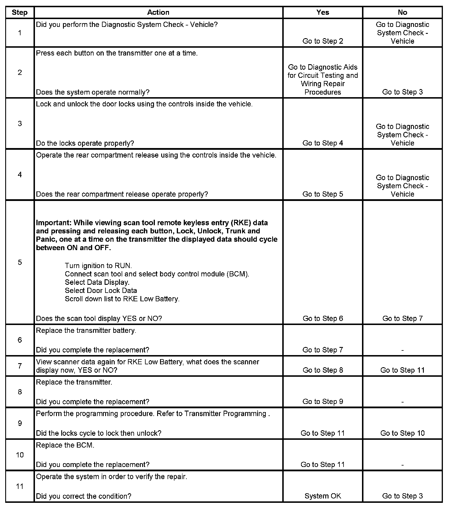 Keyless Entry System Inoperative