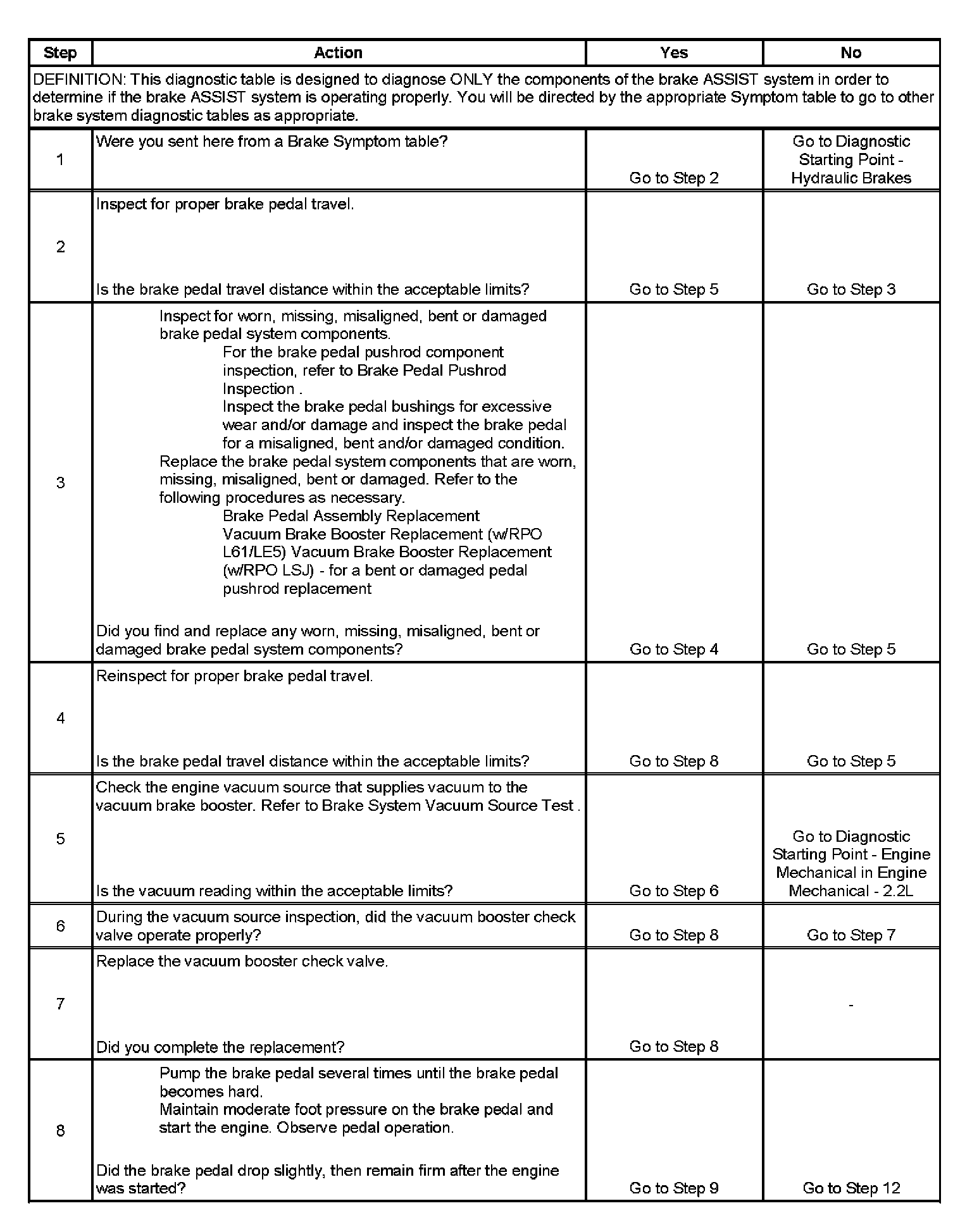 Brake Assist System Diagnosis