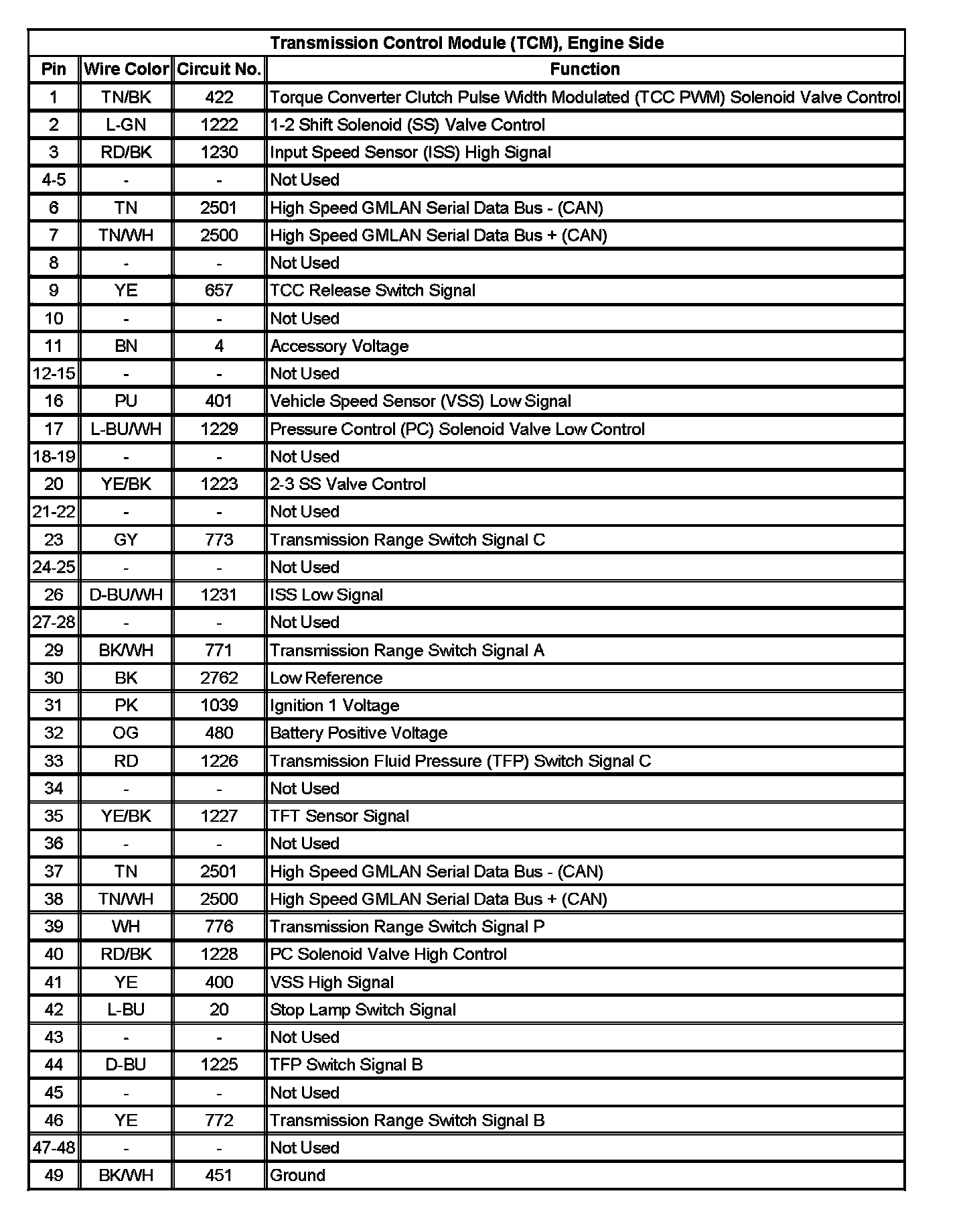 Transmission Control Module (TCM), Engine Side: