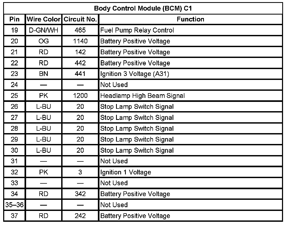 Body Control Module (BCM) C1 (Pin 19 To 37):