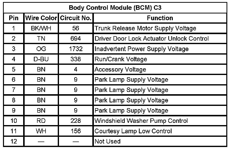 Body Control Module (BCM) C3 (Pin 1 To 12):