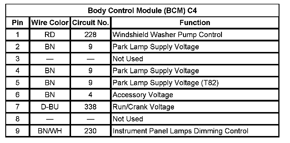 Body Control Module (BCM) C4 (Pin 1 To 9):