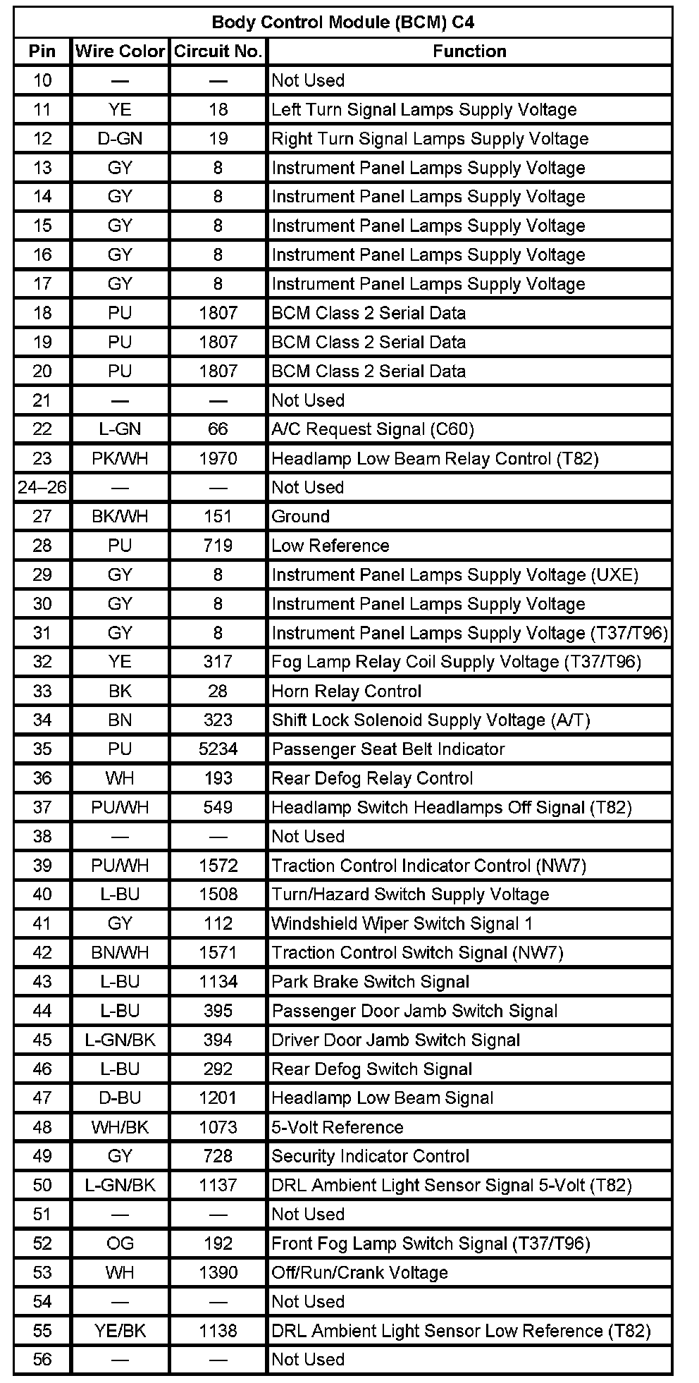 Body Control Module (BCM) C4 (Pin 10 To 56):
