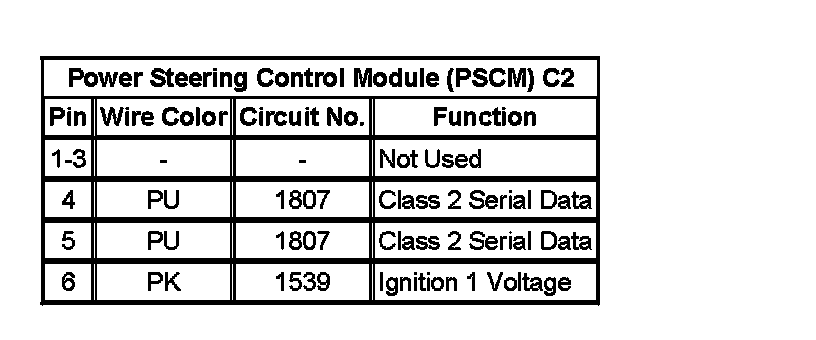 Power Steering Control Module (PSCM) C1: