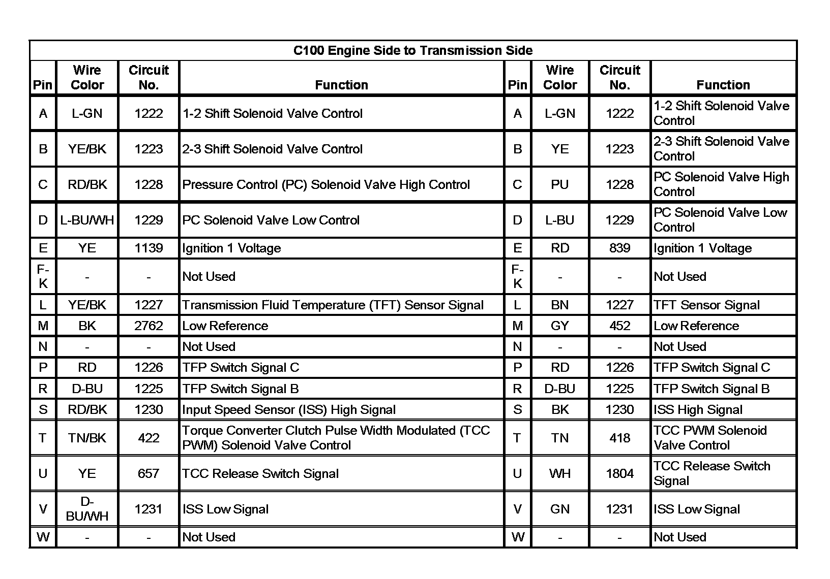 C100 Engine Side to Transmission Side: