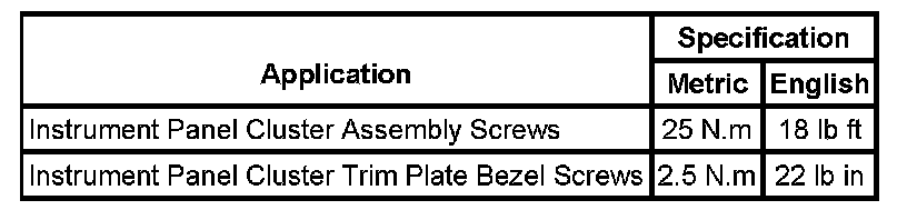 Instrument Panel, Gauges and Warning Indicators: Specifications