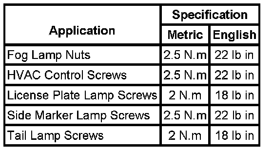 Fastener Tightening Specifications
