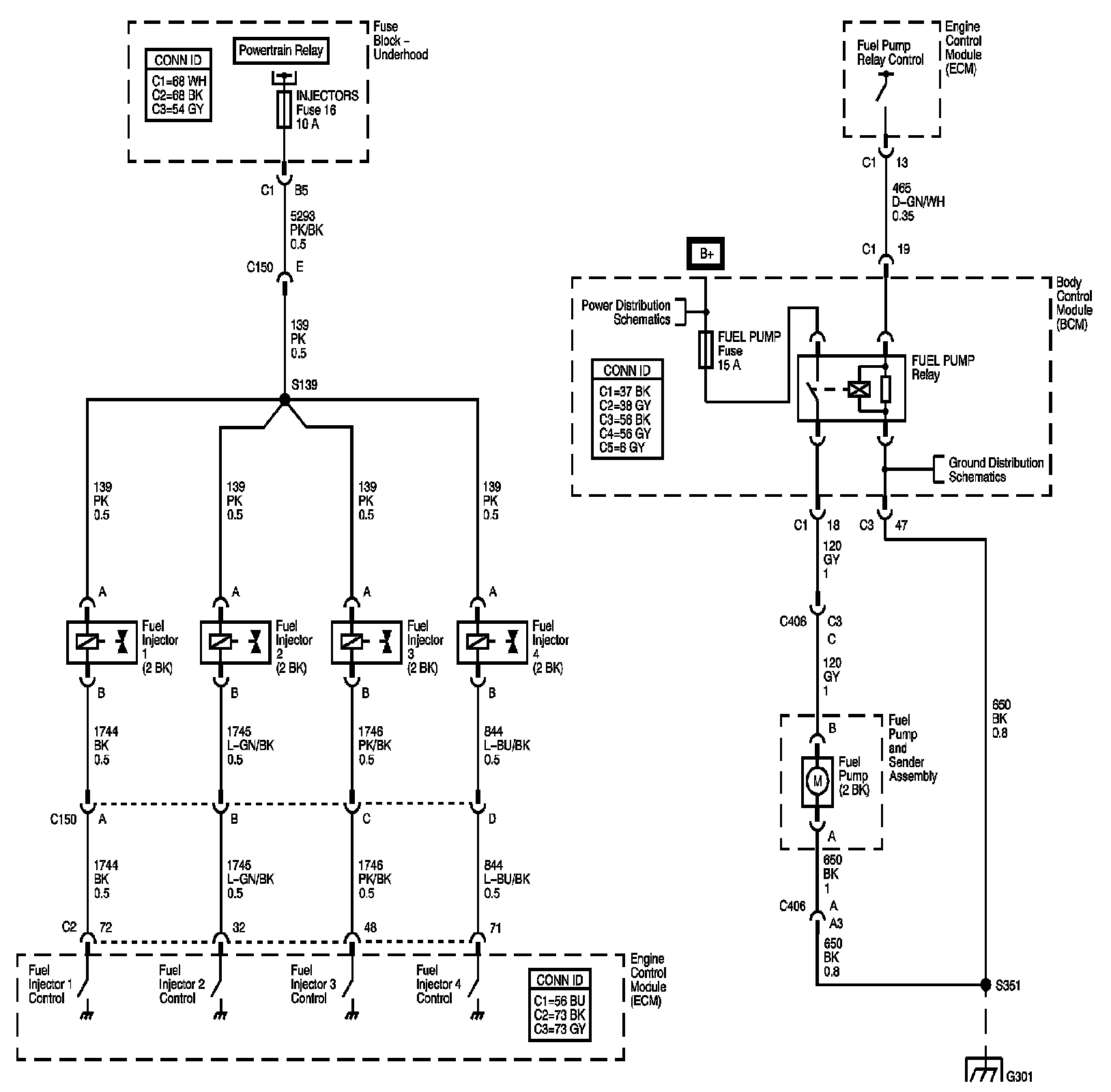 Locations: The locations for the Connectors, Grounds, Splices, and Grommets shown within these diagrams can be found via their numbers at Vehicle Locations. Locations