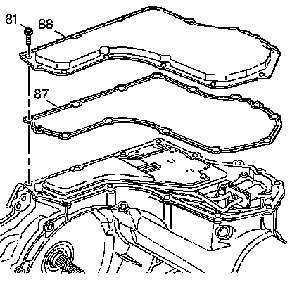 Install the gasket (87) and bottom pan (88) onto the transmission case.