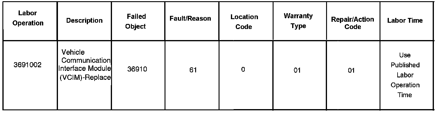 For vehicles repaired under warranty use, the table.