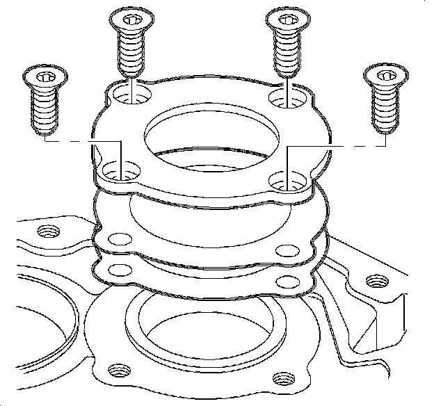 3. Install the input shaft bearing retainer using 1.5 mm (0.6 in) of shims, and tighten the screws evenly in a crisscross pattern.