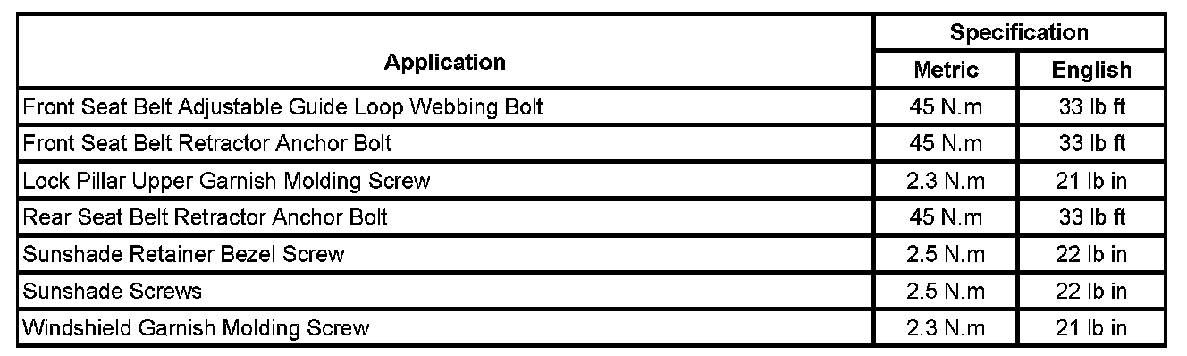 Interior Moulding / Trim: Specifications