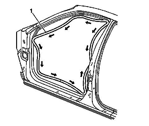 2. Remove the door opening weatherstrip (1) by pulling the weatherstrip from the pinch-weld flange.