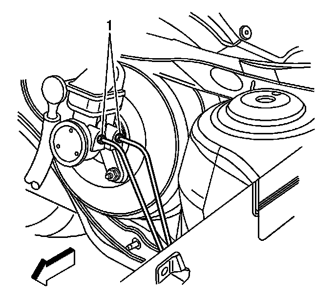 6. Disconnect the brake pipes (1) from the master cylinder.