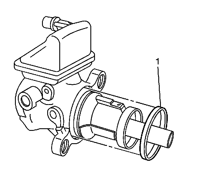 10. If the master cylinder is to be reused, inspect the master cylinder-to-vacuum brake booster seal (1) for damage. Replace the seal (1) if necessary.