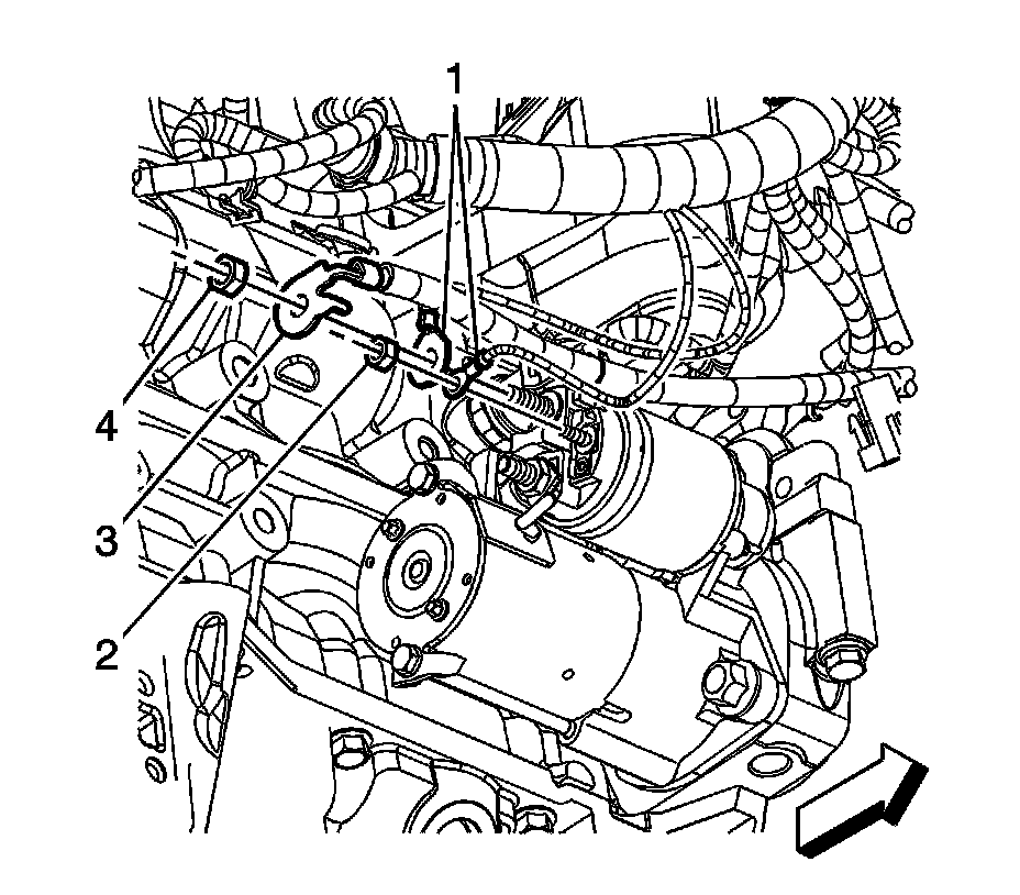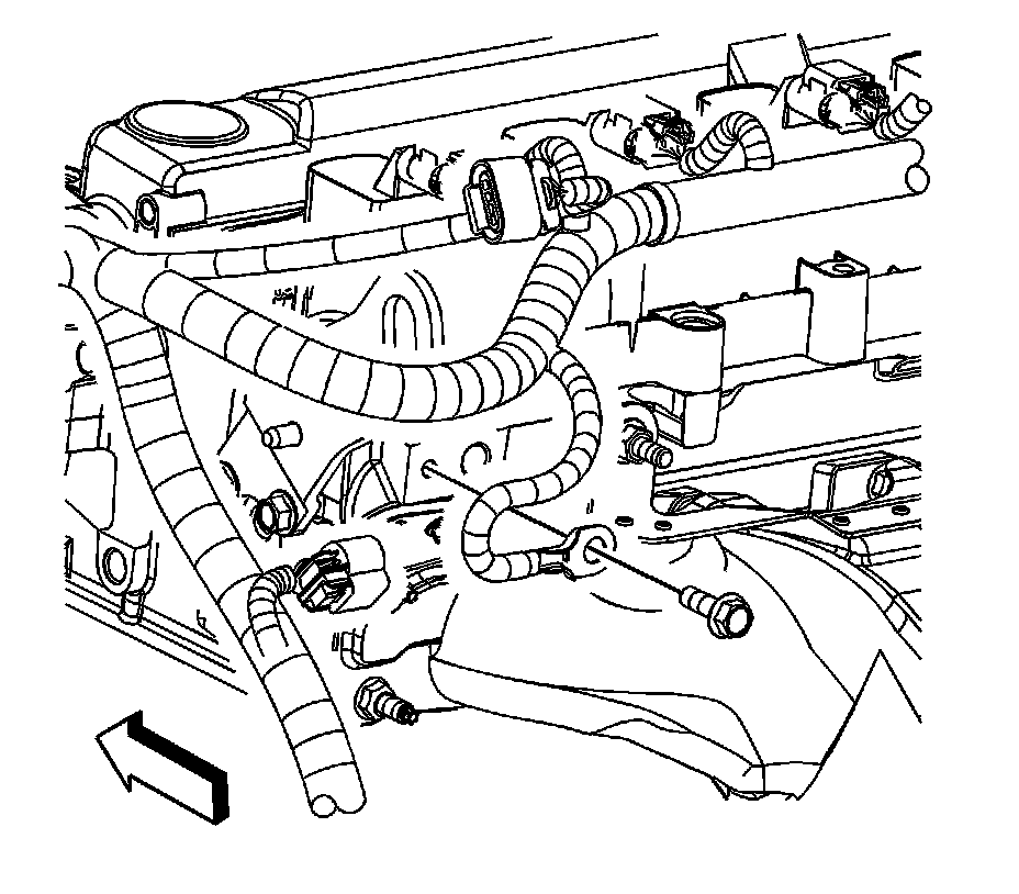 40. Install the engine harness clips to the thermostat housing and engine brackets.