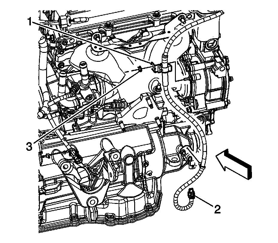 97. Connect the EVAP line quick connect fitting (3) to the EVAP purge solenoid.
