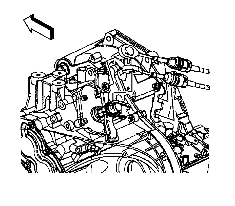 29. If equipped with a manual transaxle, install the range selector and shift lever cables to the transaxle bracket.
