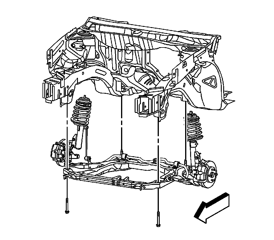 13. Slowly lower the vehicle until it aligns with the alignment marks made during the removal.