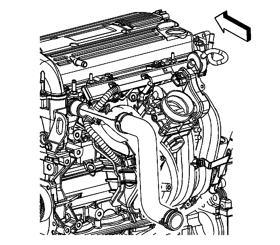 78. Position the brake booster vacuum hose clamp at the intake manifold.