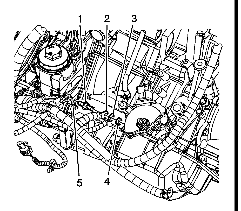 35. Connect the engine harness electrical connectors (1, 5) to the HO2S.