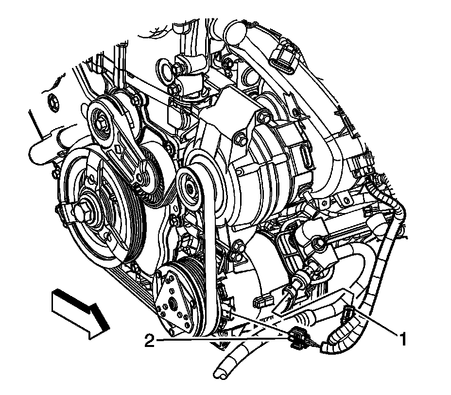 59. Connect the engine harness electrical connector (2) to the A/C compressor.