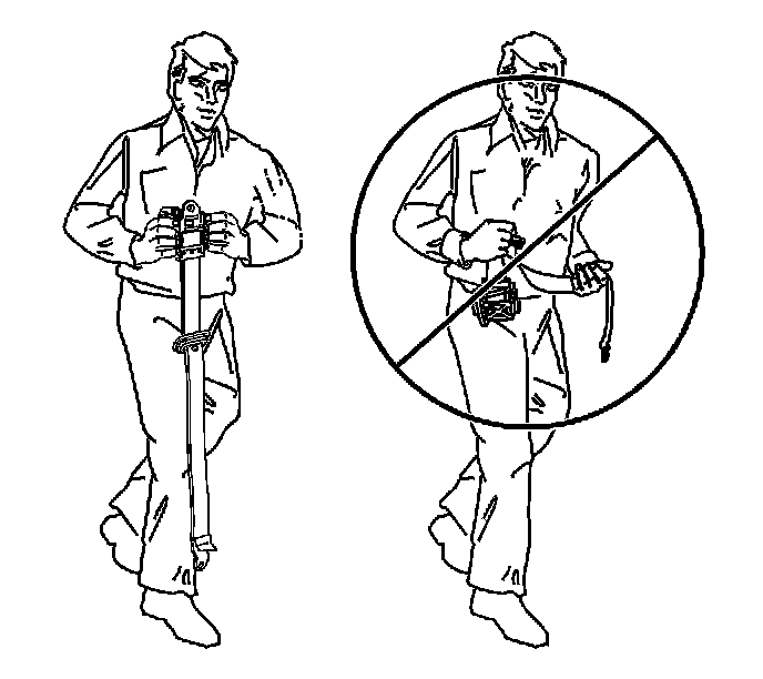 * Carry the seat belt pretensioner by the housing, keeping hands and fingers away from the seat belt webbing.