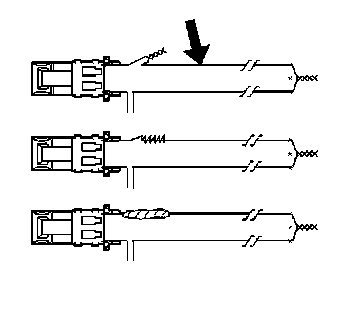 6. Cut the seat belt retractor pretensioner harness connector out of the vehicle, leaving at least 16 cm (6 in) of wire at the connector.