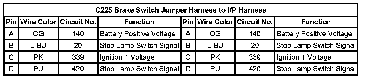 C225 Brake Switch Jumper Harness to I/P Harness