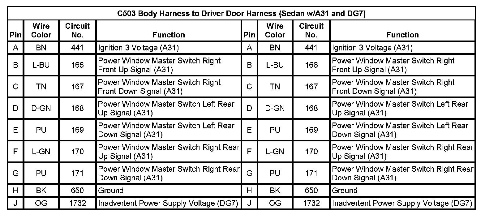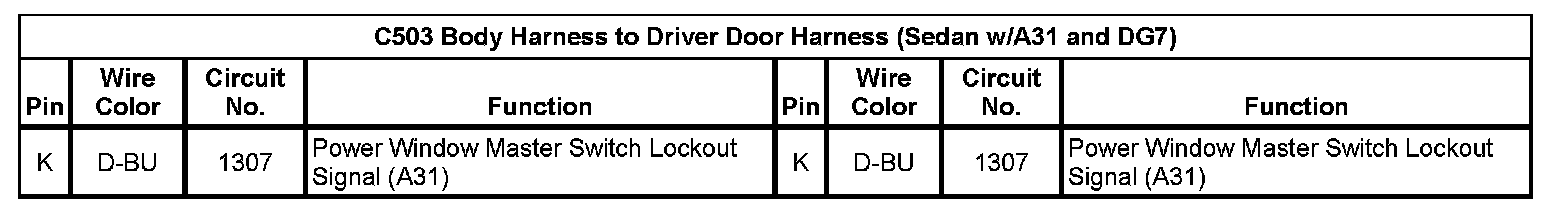 C503 Body Harness to Driver Door Harness (Sedan w/A31 and DG7)