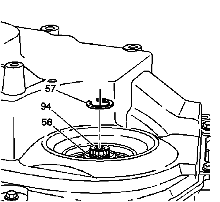 1. Install a new snap ring (57) into the snap ring groove on the final drive end (small machined diameter) of the output shaft (94).