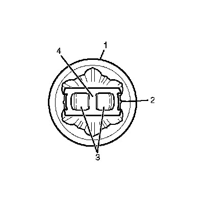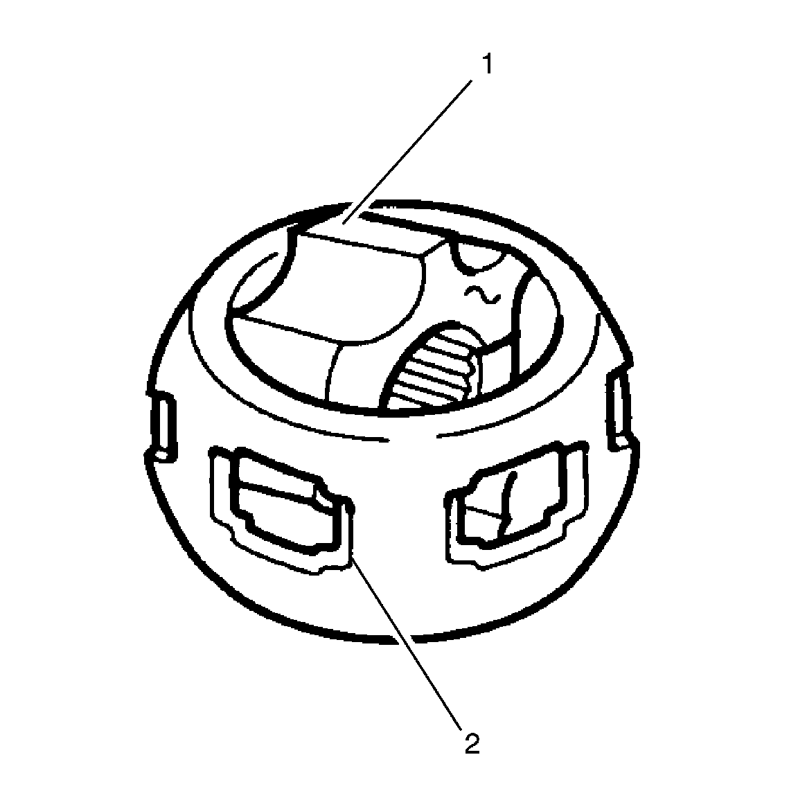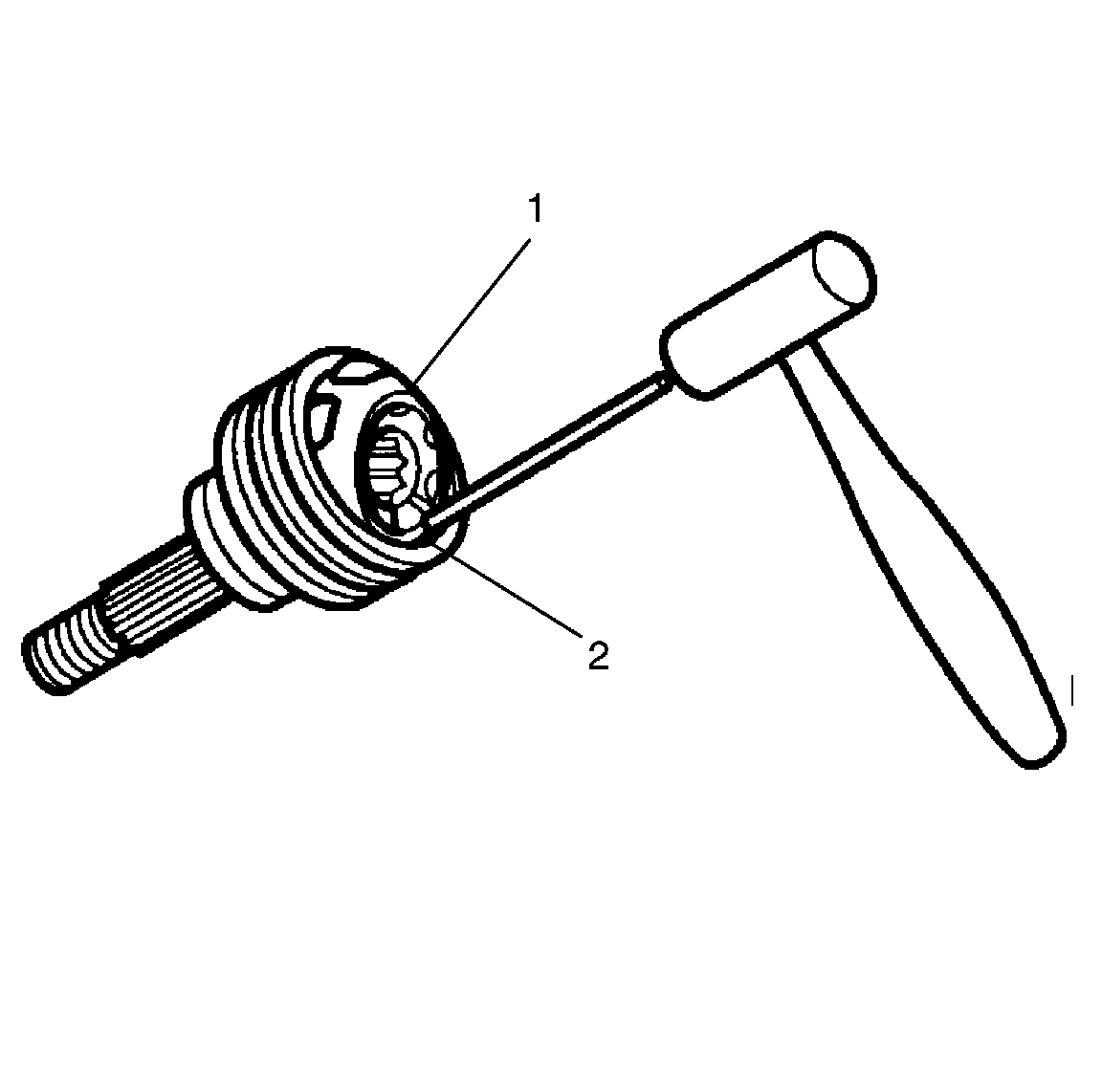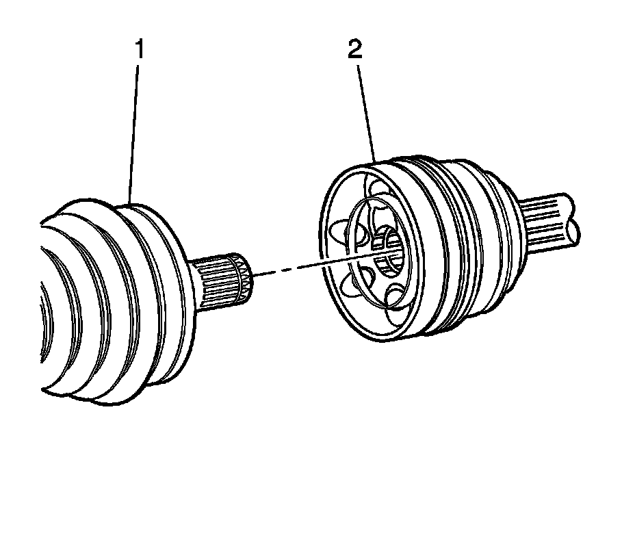 12. Rotate the CV joint inner race 90 degrees to the centerline of the CV joint cage with the lands of the CV joint inner race (1) aligned with the windows of the CV joint cage (2).