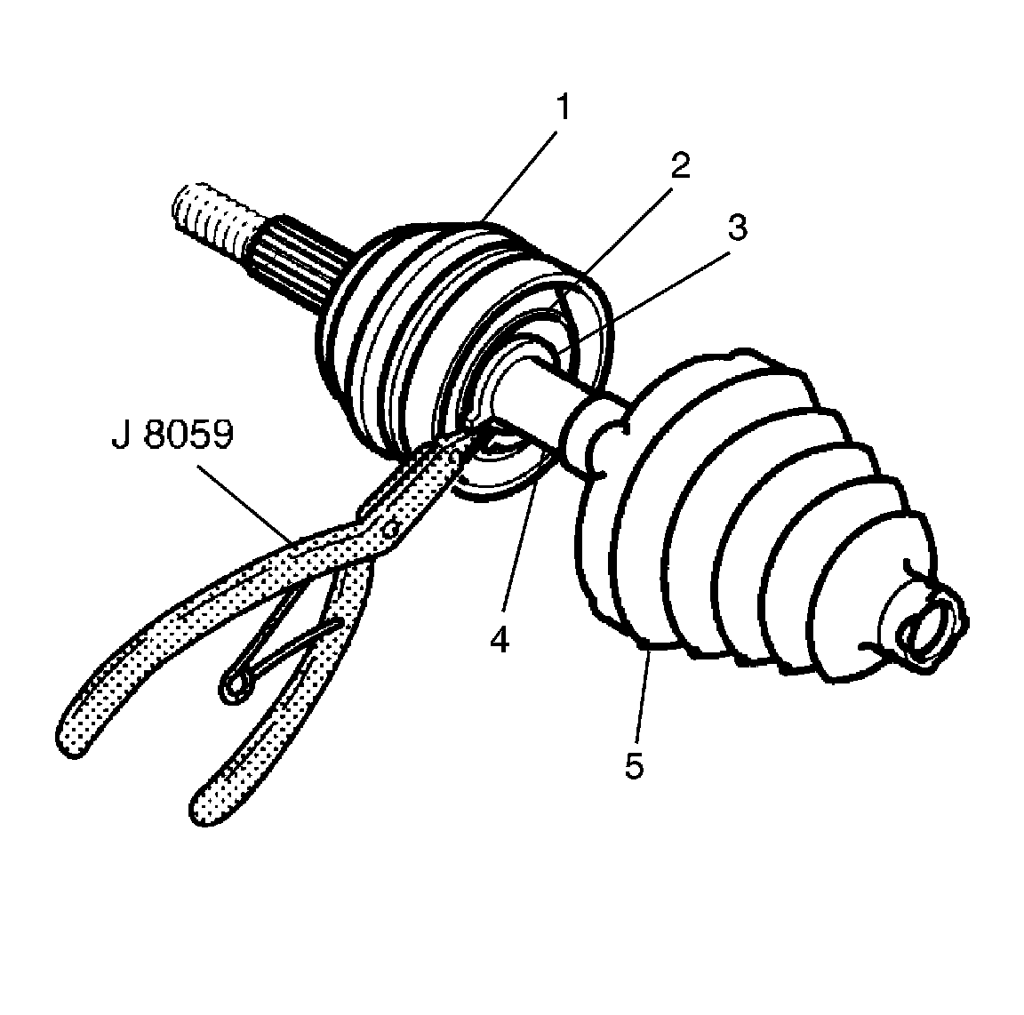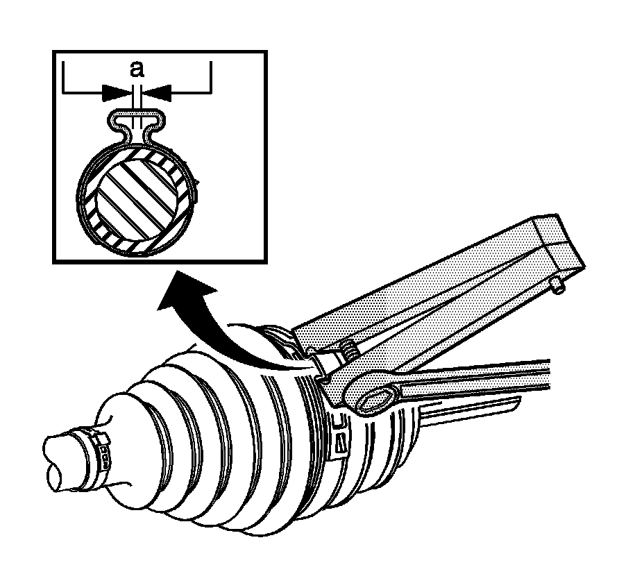 1. Remove the large boot retaining clamp from the CV joint with a side cutter. Discard the boot retaining clamp.