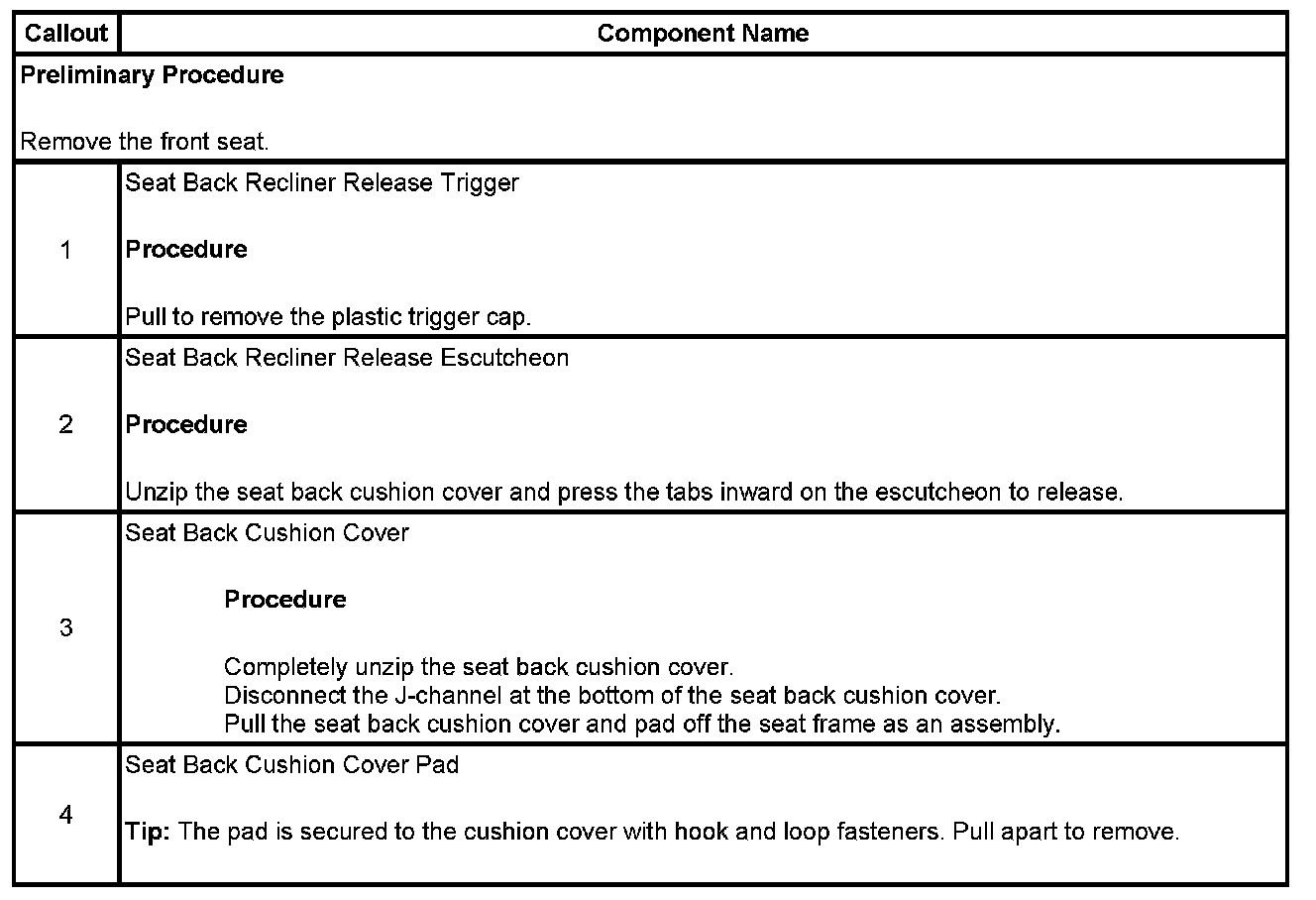 Seat Back Cover and Pad Replacement