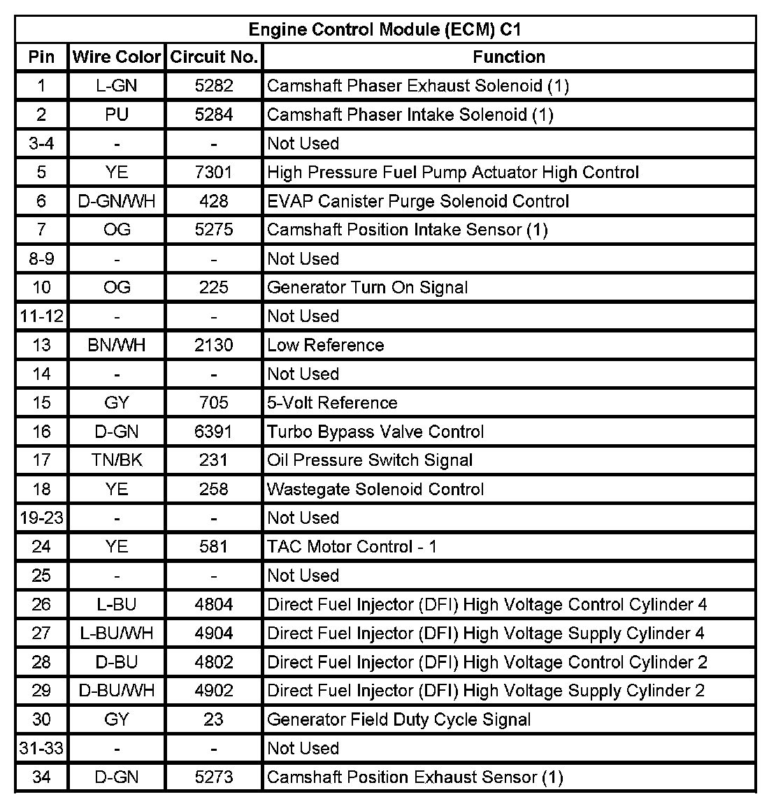Engine Control Module (ECM) C1 (Pin 1 To 34):