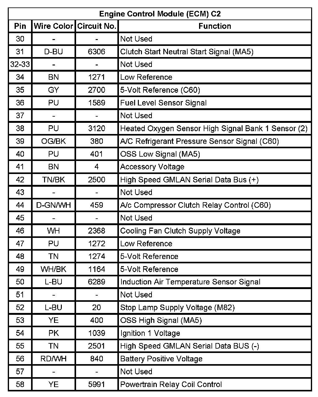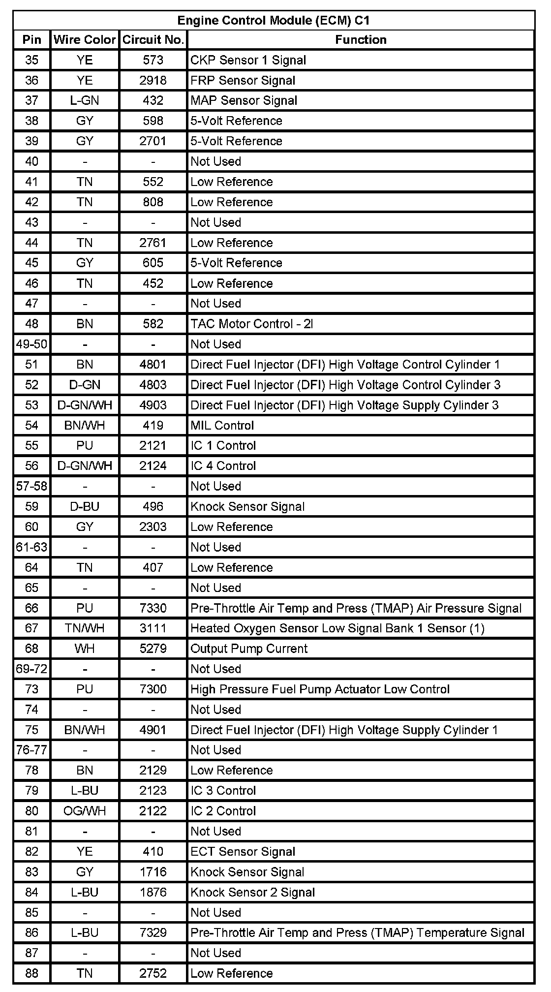 Engine Control Module (ECM) C1 (Pin 35 To 88):