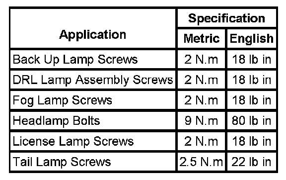 Lighting and Horns: Specifications