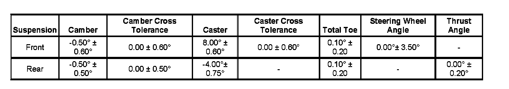 Wheel Alignment Specifications