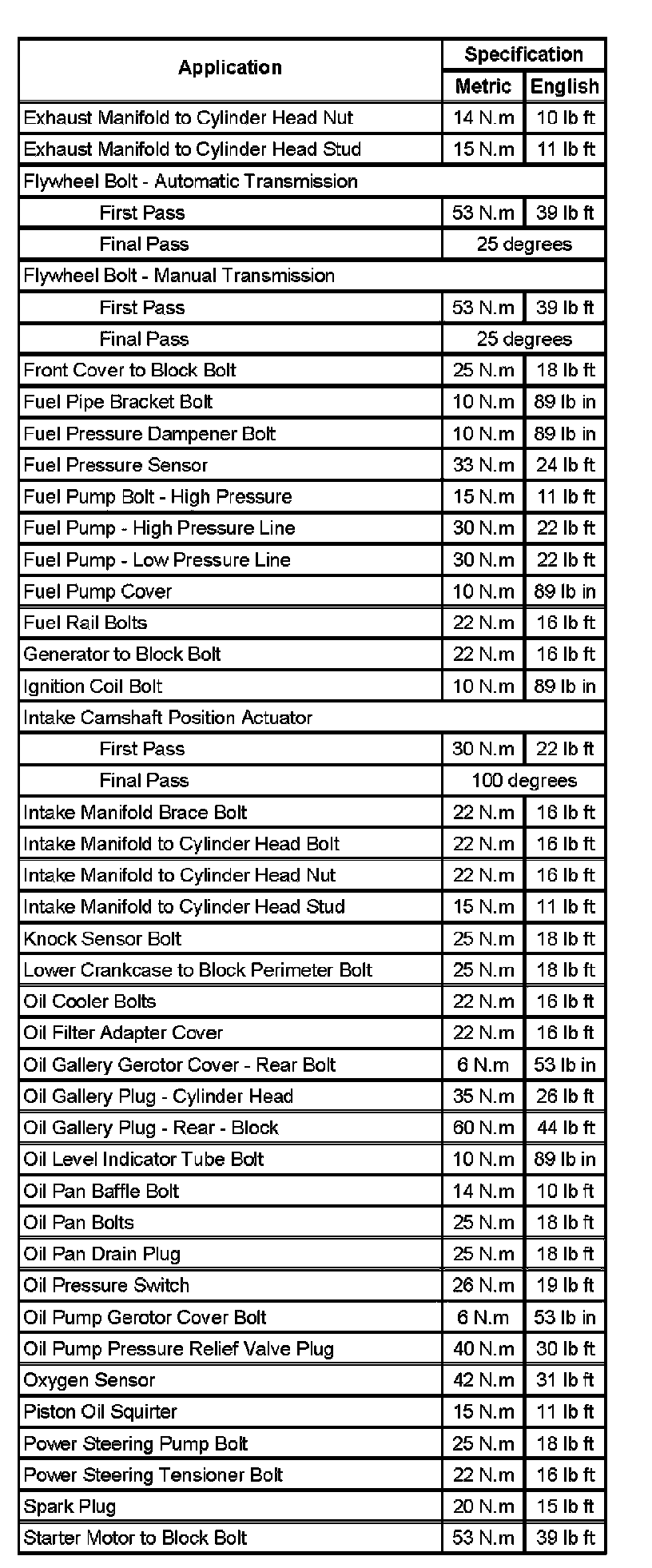 Fastener Tightening Specifications (Part 1):